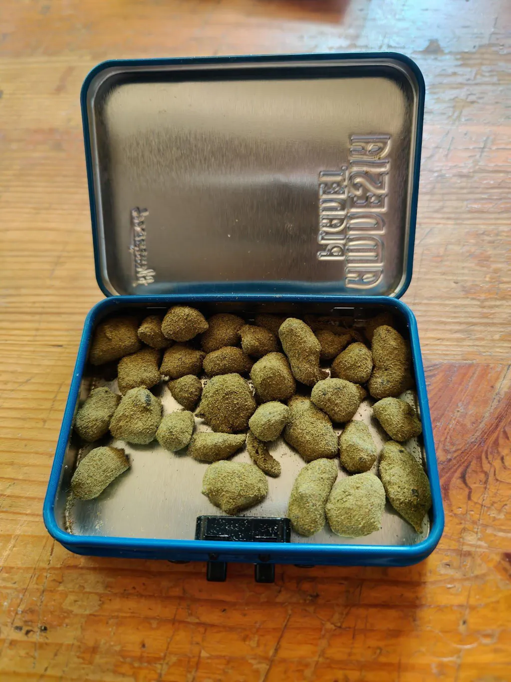 Aspect : Boule ultra-compacte, dense et collante, enrobée de kief, cœur Indoor concentré